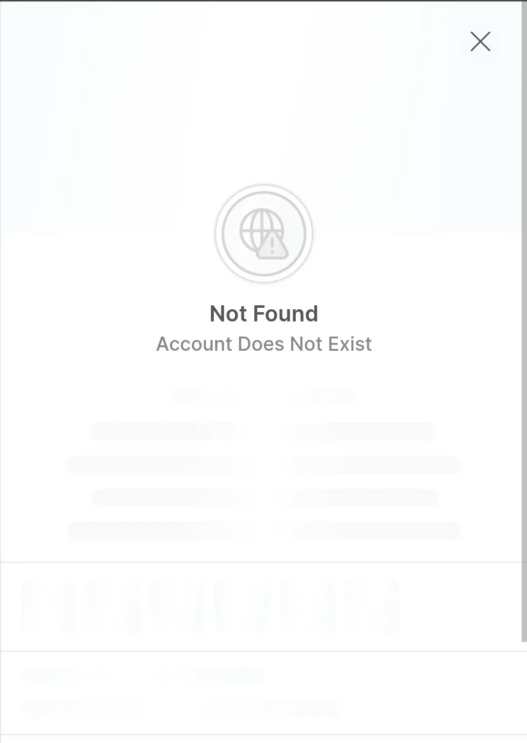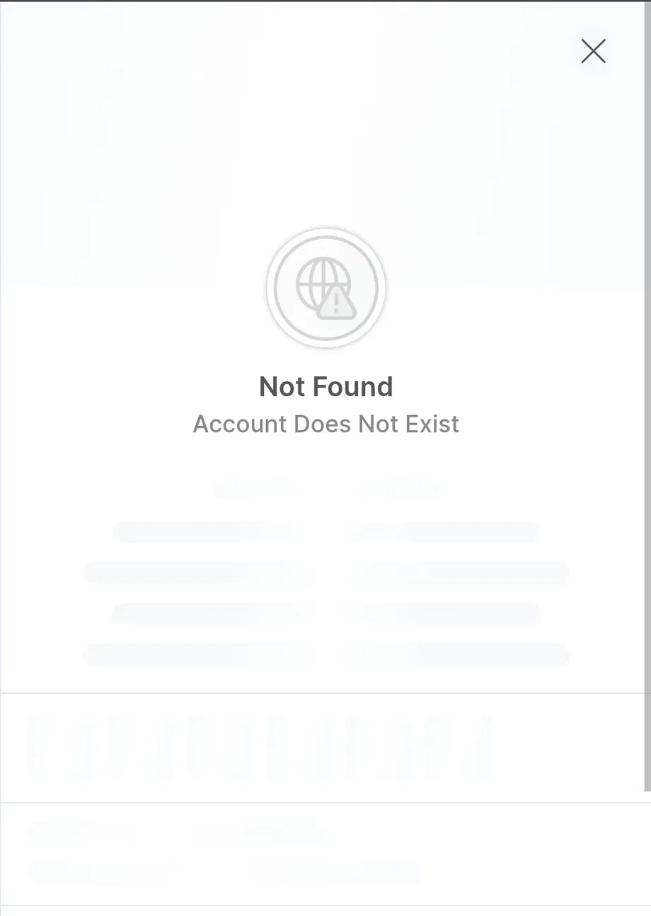 Account does not exist error Sorry, the user has blocked you. You may not view their profile or interact with them.