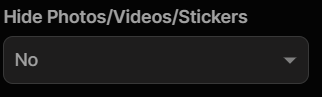 3. Change “Hide Photos/Videos/Stickers to Yes to hide them or No to have them viewable in groups/rooms.